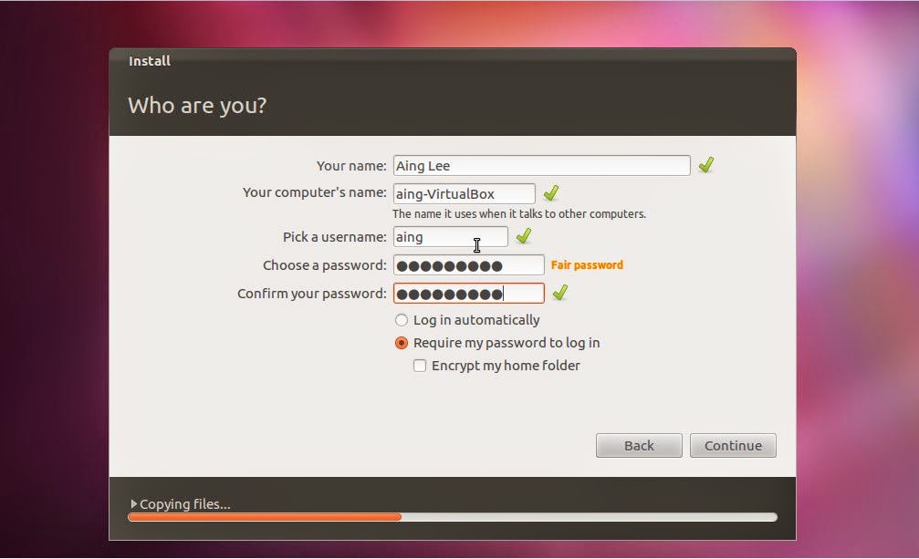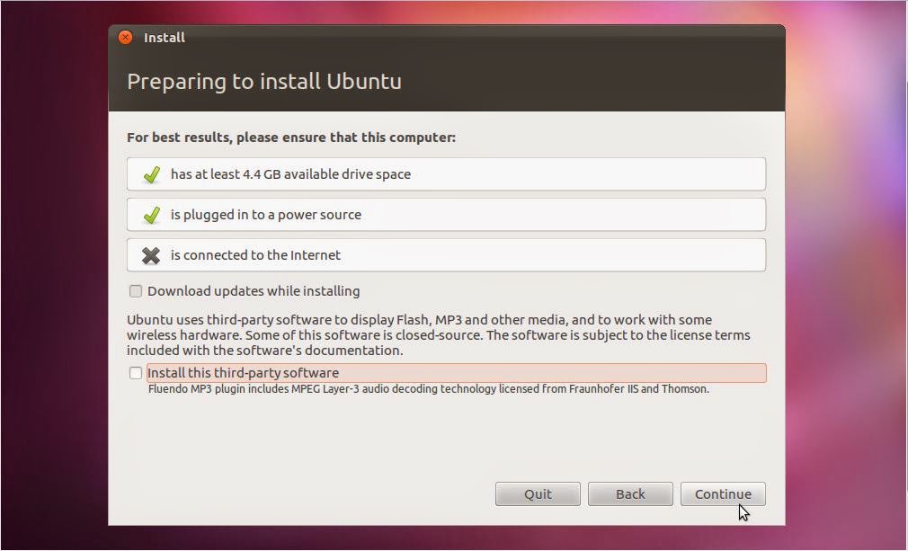 Setelah semua sudah siap klik tombol continue untuk melanjutkan proses instalasi.