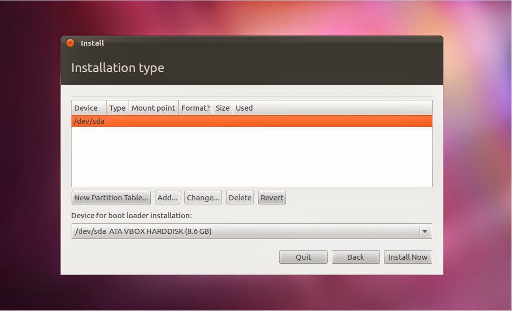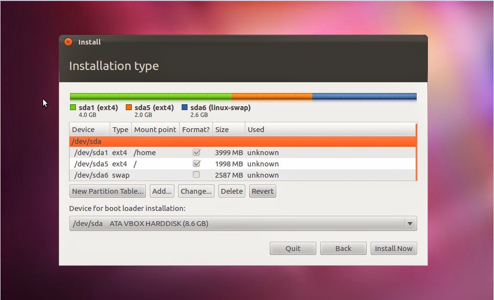 Jika kesulurahan pembuatan partisi sudah selesai semua sekarang saatnya kita menginstalasi, dengan cara klik bagian partisi mount point “/” dan klik “Install Now” (lihat gambar 12)