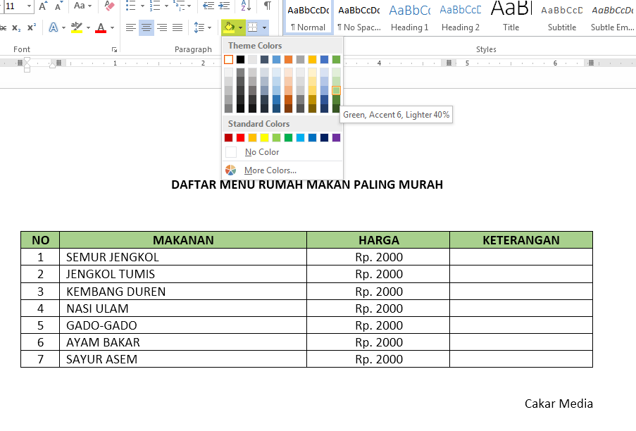 Salam hangat sobbat muda, jumpa lagi nih bersama saya. :-). kali ini saya mau memberikan tutorial pada program Ms.Word, yaitu membuat Tabel. Umumnya membuat tabel pada Ms.Word merupakan materi yang mendasar, akan tetapi tidak ada salahnya kan, saya masukan kedalam kurikulum materi yang ada di Cakar Media ini. hehehe. OK langsung saja kita simak cara-caranya