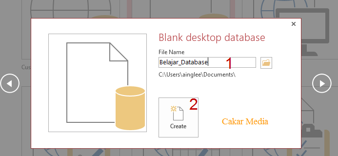Blank Desktop Database, setelah itu maka akan di minta memasukan Nama Databasenya, dan ganti nama Databasenya sesuai dengan kebutuhan.
