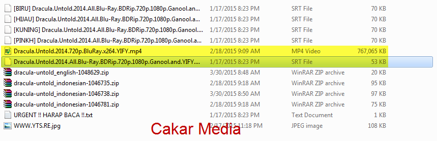 Pada gambar dibawah ini adalah beberapa file dengan format Mp4 (Video) dan SRT (Subtitlenya)