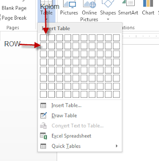 Setelah itu, tentukan kebutuhan tabel yang akan kita buat. Dalam hal ini ada 2 macam bentuk tabel yang pertama kolom (coloumn) yang kedua baris (Row), jadi tinggal tentukan saja kebutuhan barisnya berapa, dan kolomnya berapa.