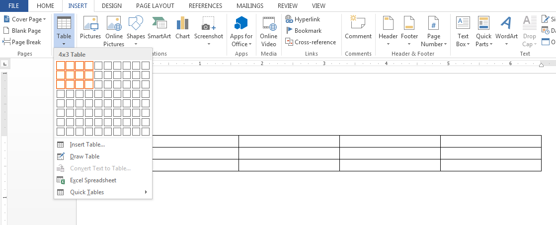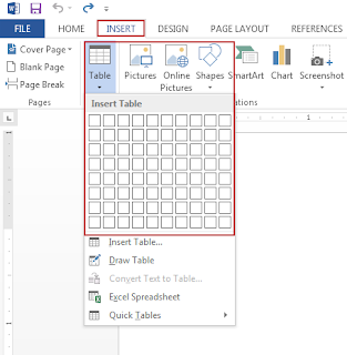 Untuk membuat tabel cara yang pertama, klik menu Insert, pilih table