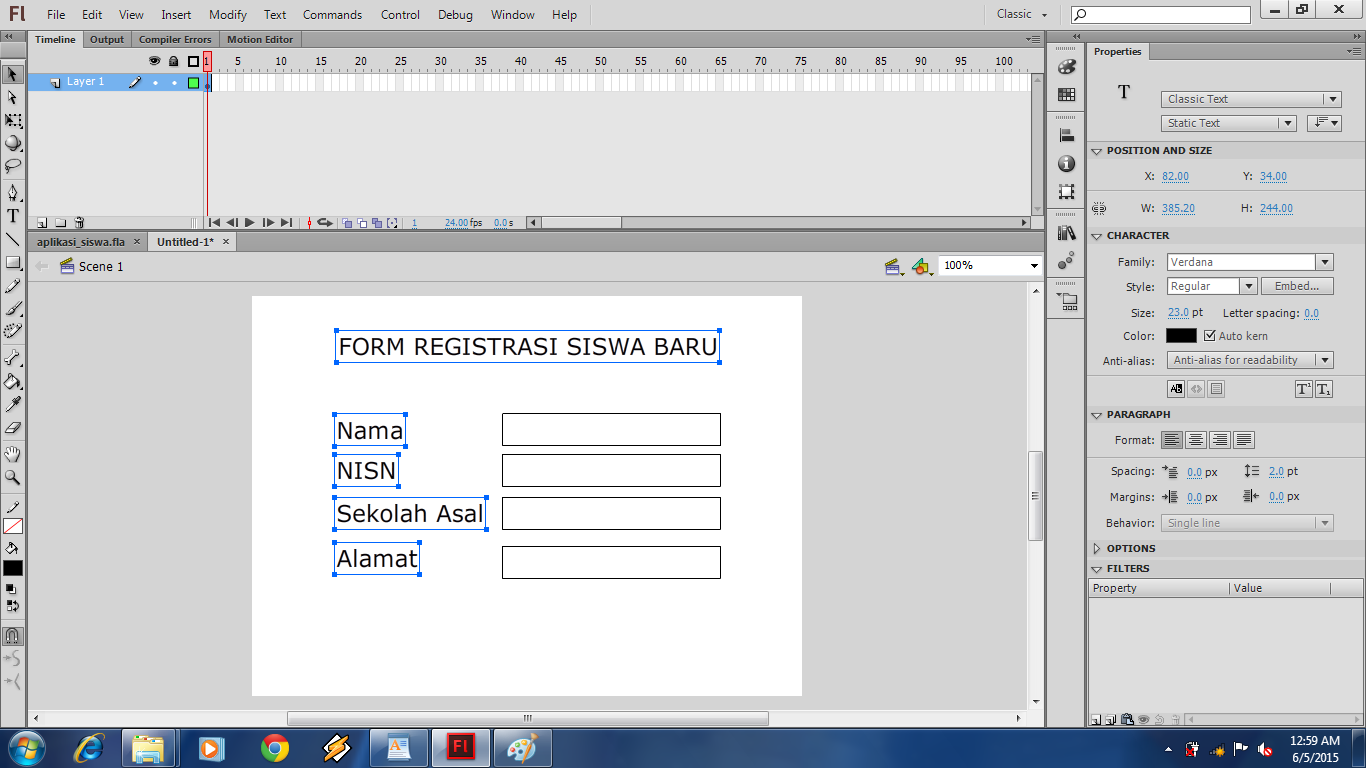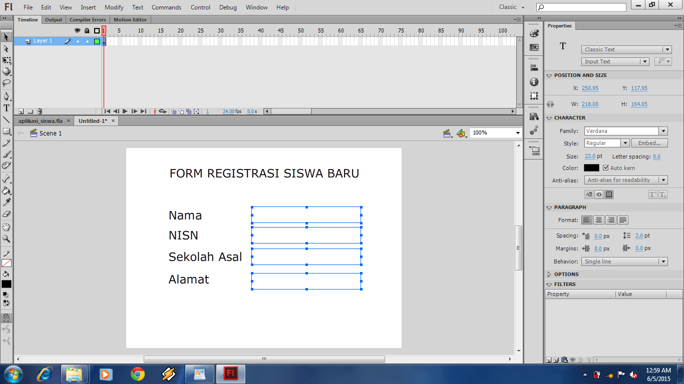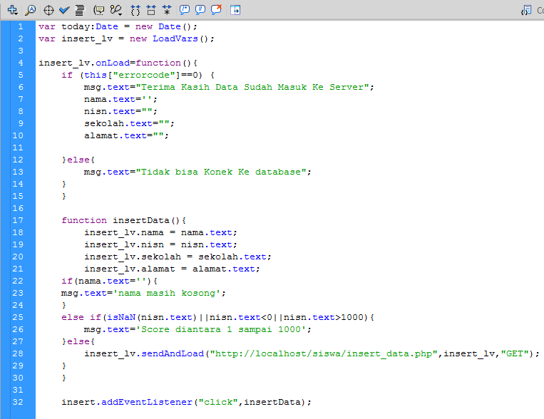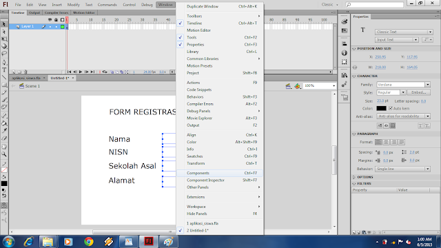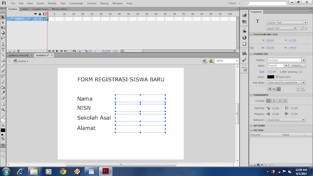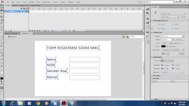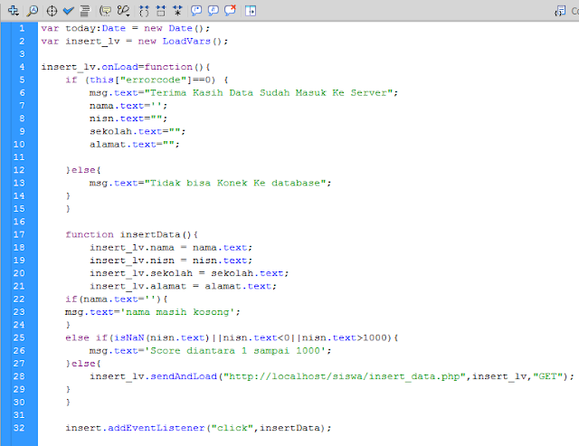 Hallo sobat Muda, jumpa lagi yah bersama saya Aing Lee di cakar media. Rasa-rasanya sudah lama juga nih saya gak buat artikel tutorial!..Okeh langsung saja ya sob! pada kesempatan ini saya akan mengajak anda untuk membuat Program Aplikasi yang sederhana dengan menggunak program Adobe Flash, yaitu program aplikasi Form Input data Siswa. Lho kok pake Flash?.. emangnya ngapa ?.. bukannya flash itu program yang cuma buat bikin animasi!,,, ya salah satunya!. yupz sobat muda Flash bukan hanya sebagai program pembuat animasi, akan tetapi dapat juga digunakan untuk membuat berbagai macam program oleh karena itulah flash dikatan program Multi Platform yang dimana program flash dapat bisa kita gunakan untuk berbagai macam kebutuhan, seperti pembuatan game, animasi, form registrasi, jpeg, html, dan lainnya. ooooohh begonooooh ya...! laaahh Iyyyyaaaa!.. hehehehhe.. ya udah yuk ah kita bikin aplikasinya!...