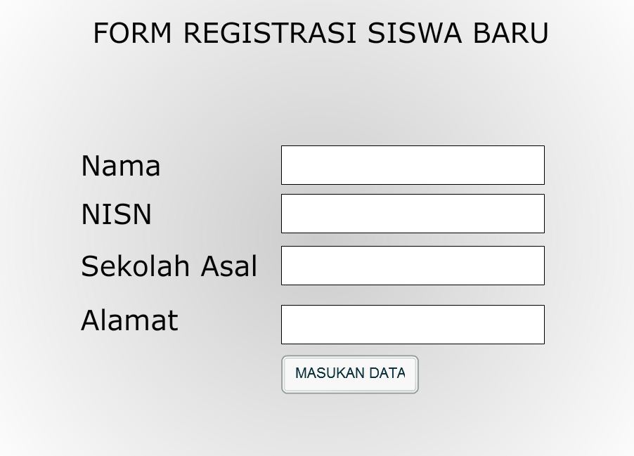jika semua program tersebut sudah terinstal, sekarang kita akan buat konsep programnya seperti apa.. nah kebetulan disini saya akan membuat sebuah konsep pendaftaran Siswa Baru, dengan contoh fieldnya sebagai berikut :