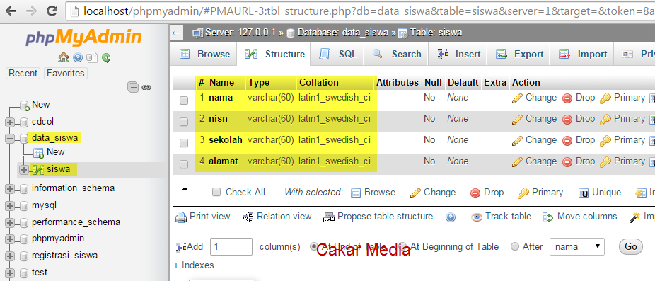 Nama Tabel = siswa