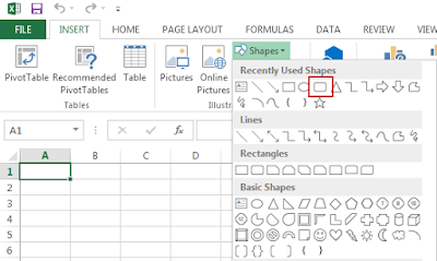 yang pertama siapkan printer yang sudah kita instal drivernya, berikutnya buka program Ms. excel lalu buatlah Shapes dengan bentuk seperti ini, atau buatan sobbat yang lebih keren..