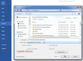 Stelah di buat, sekarang simpanlah dokumennya dengan format HTML, dengan cara